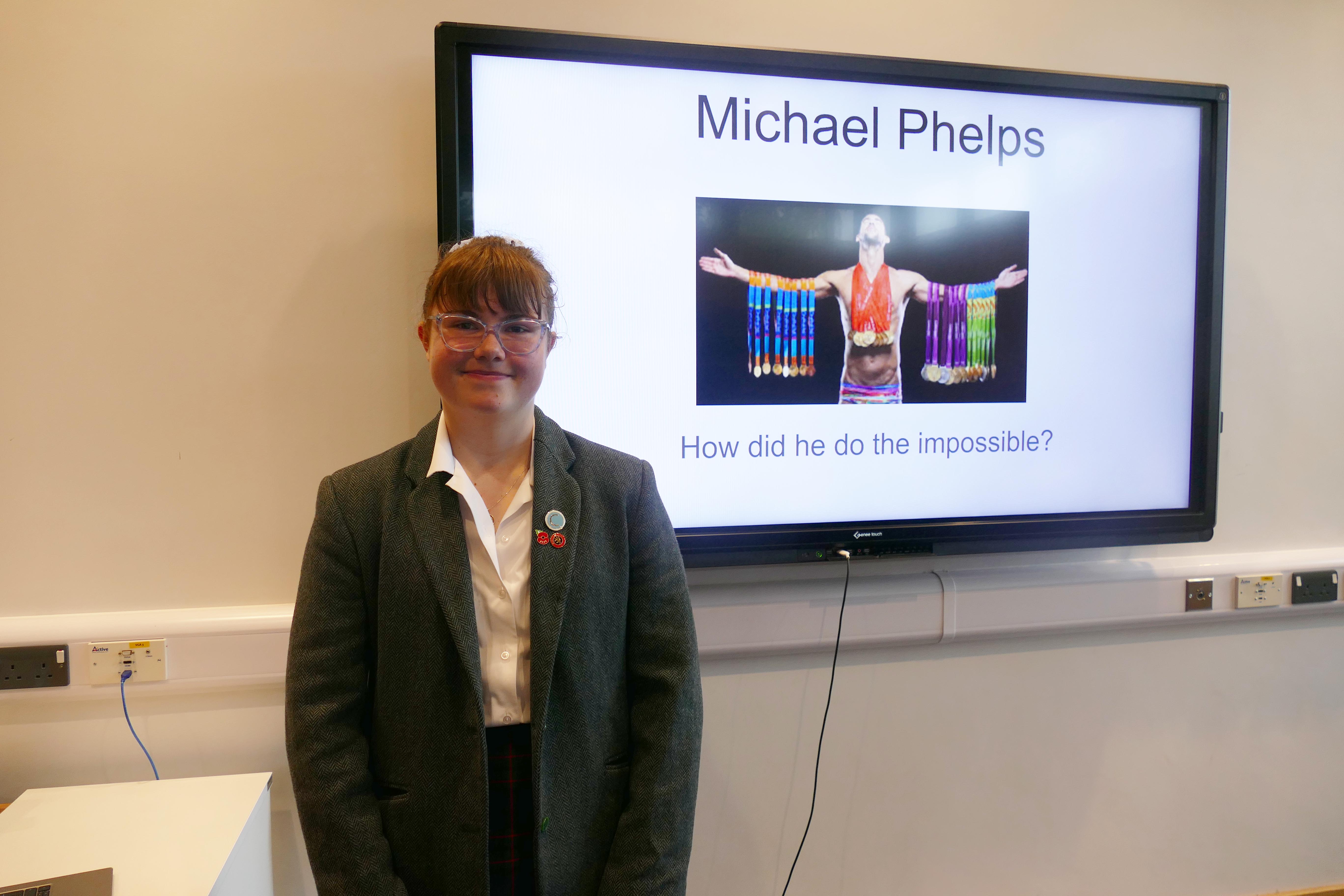 Third Form pupil Tily presented a lecture titled “The Baltimore Bullet: The Legend of Michael Phelps’ Eight Olympic Golds.” She explored Phelps’ remarkable career, considering life after success, the pathways to extraordinary achievement, and broader questions about what truly defines greatness.