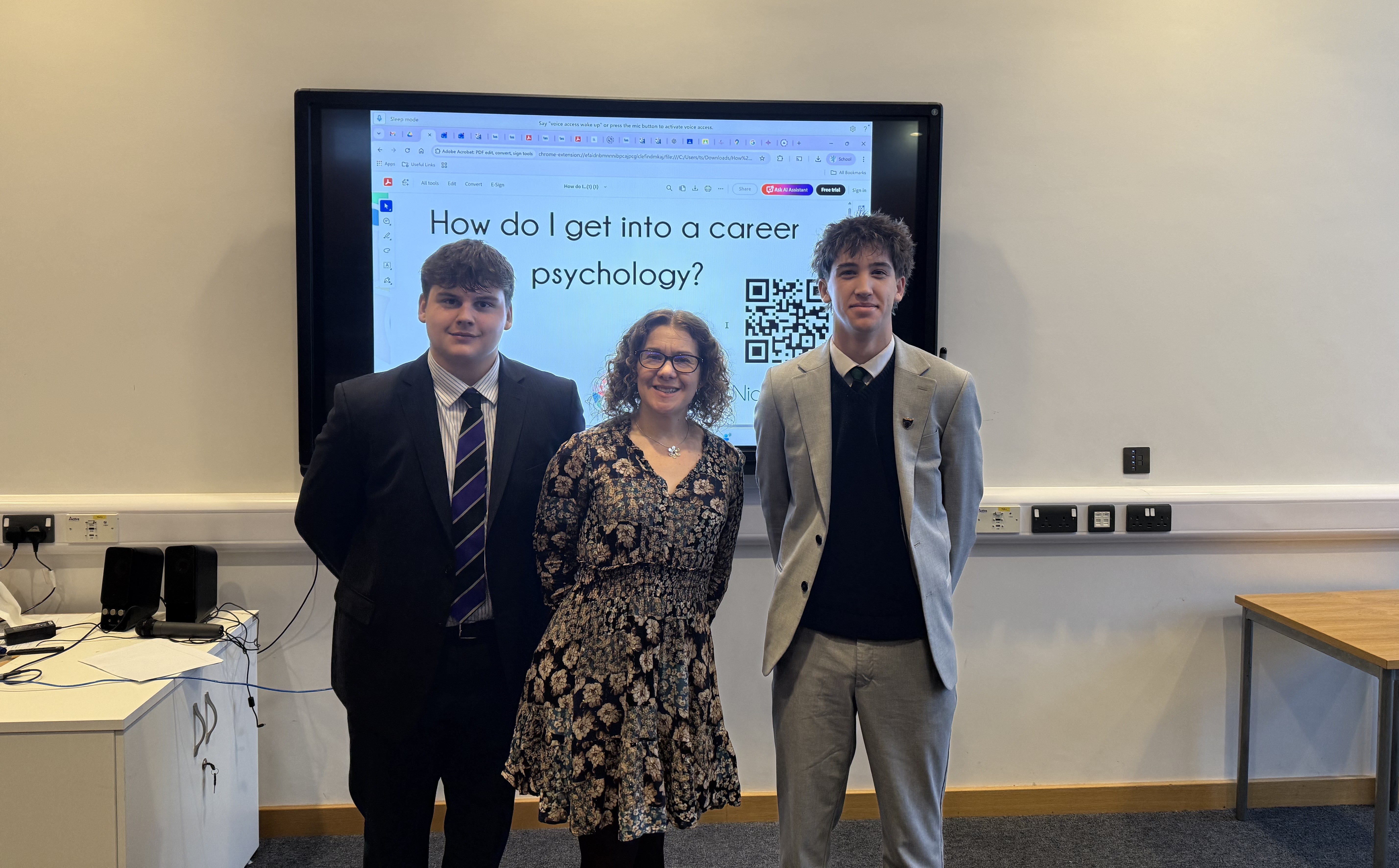 We were also joined by Dr Wendy Nicholls, who focused on pathways into Psychology. The session explored university degree routes alongside a broad range of related career options, highlighting how Psychology links to key areas including education, health, business, and research. With a specialist focus on health and eating-related topics, the talk was particularly relevant for students interested in nutrition and wellbeing. Pupils also gained valuable insight into what universities look for in Psychology applicants. Upper Sixth students, Harvey and Dax, led the interview, asking thoughtful and insightful questions throughout the session.