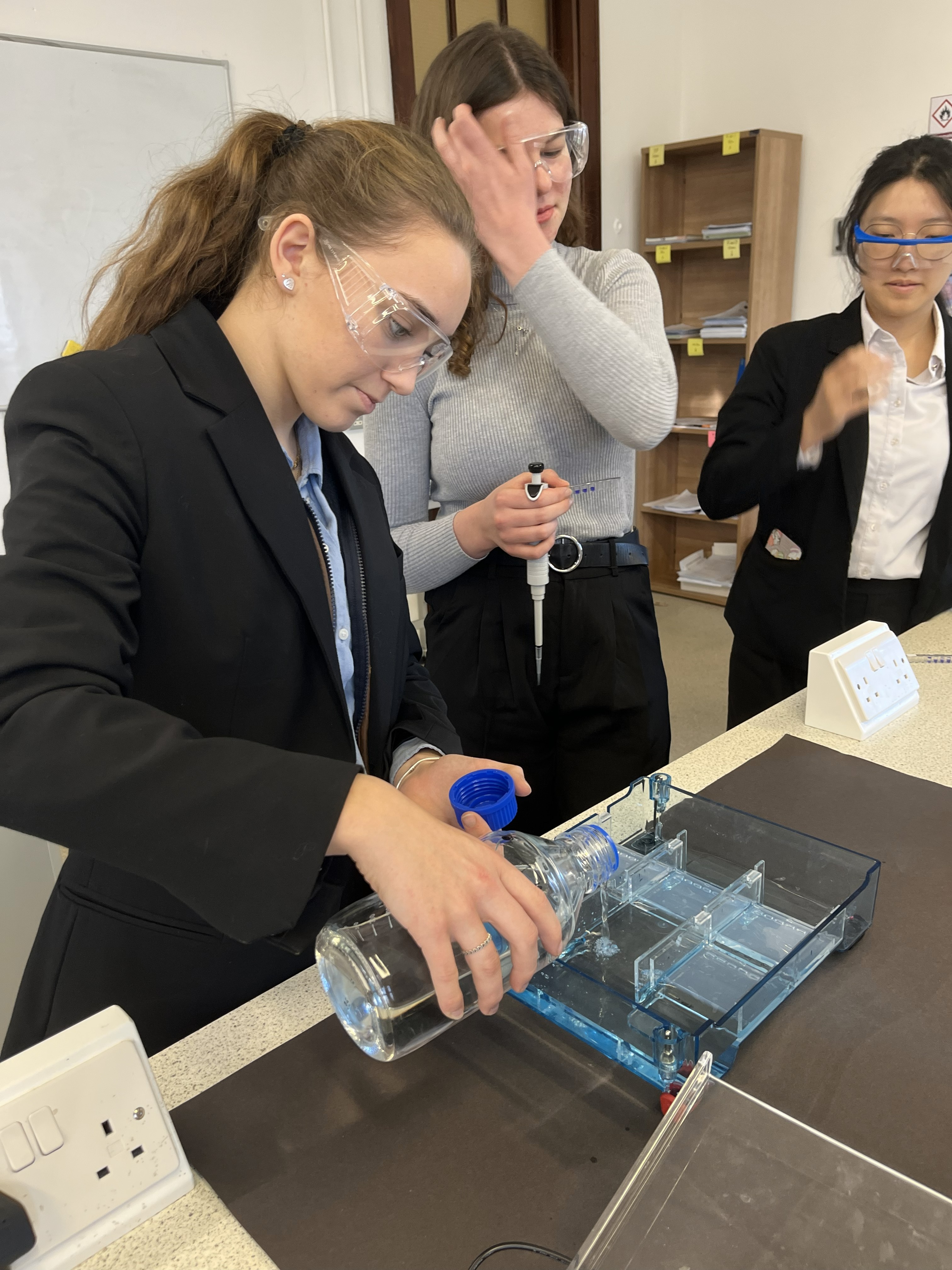 Upper Sixth Biology students recently took part in a detailed gel electrophoresis practical, gaining first-hand experience in a core molecular biology technique. The activity involved several key steps: