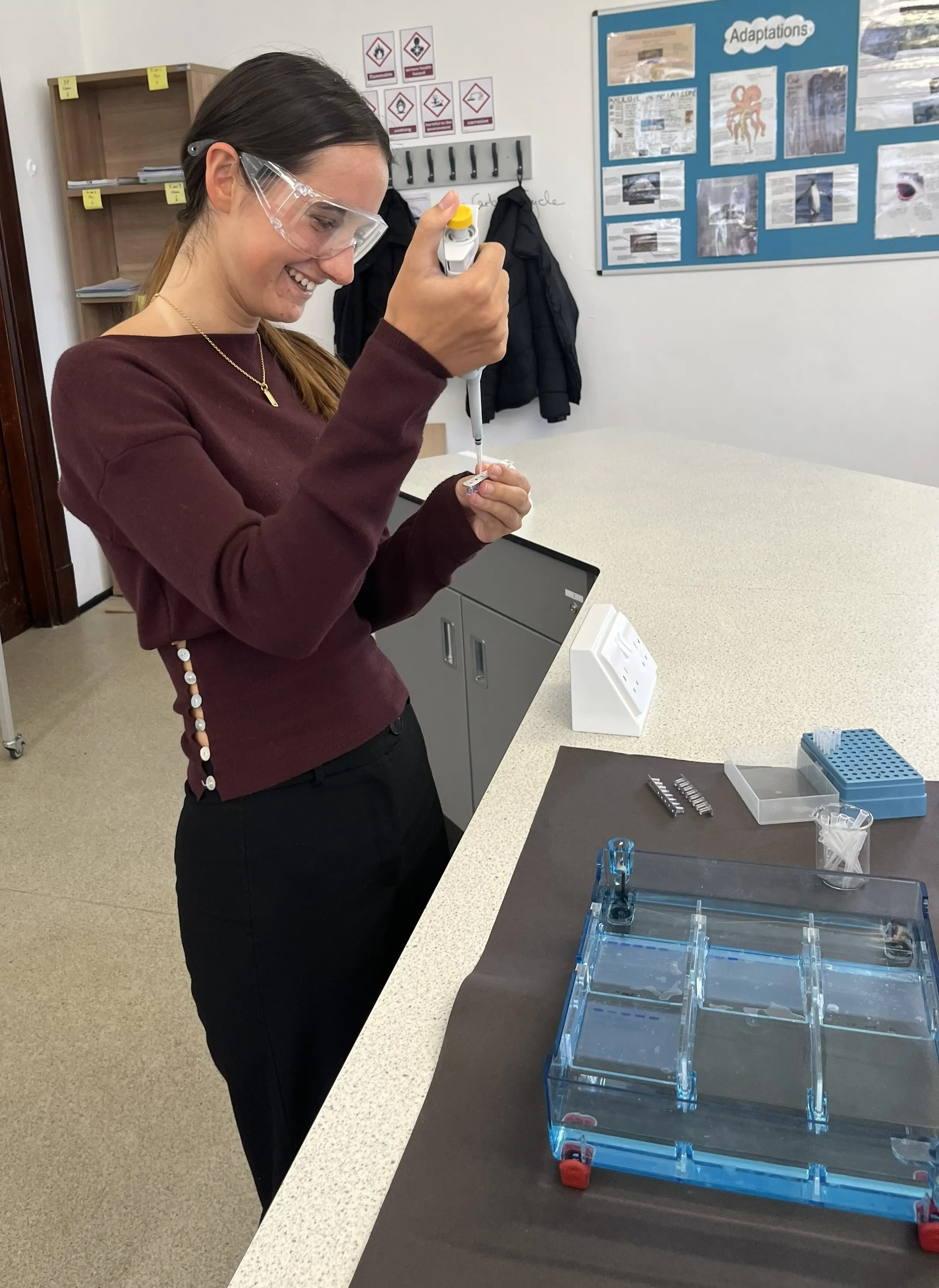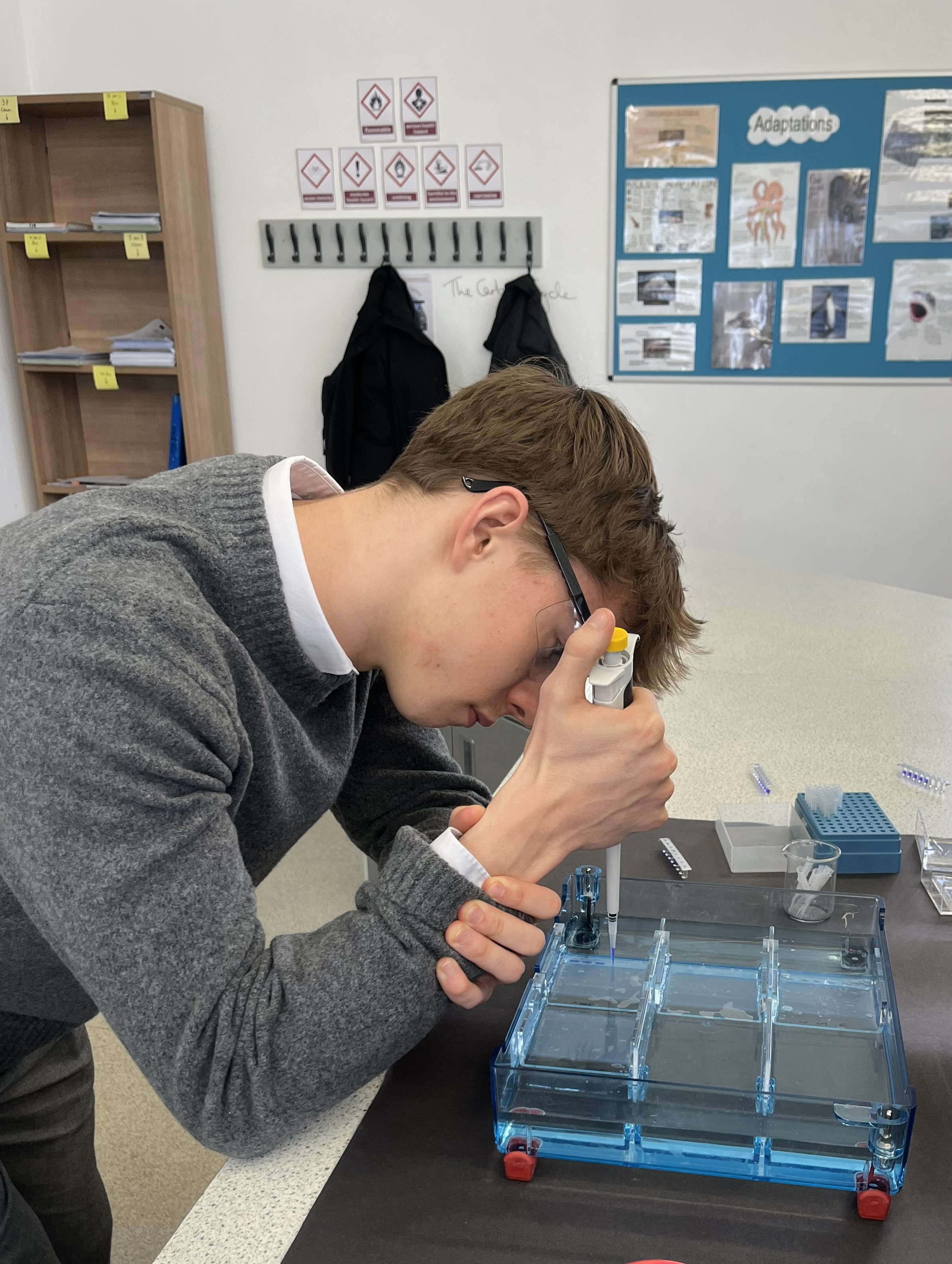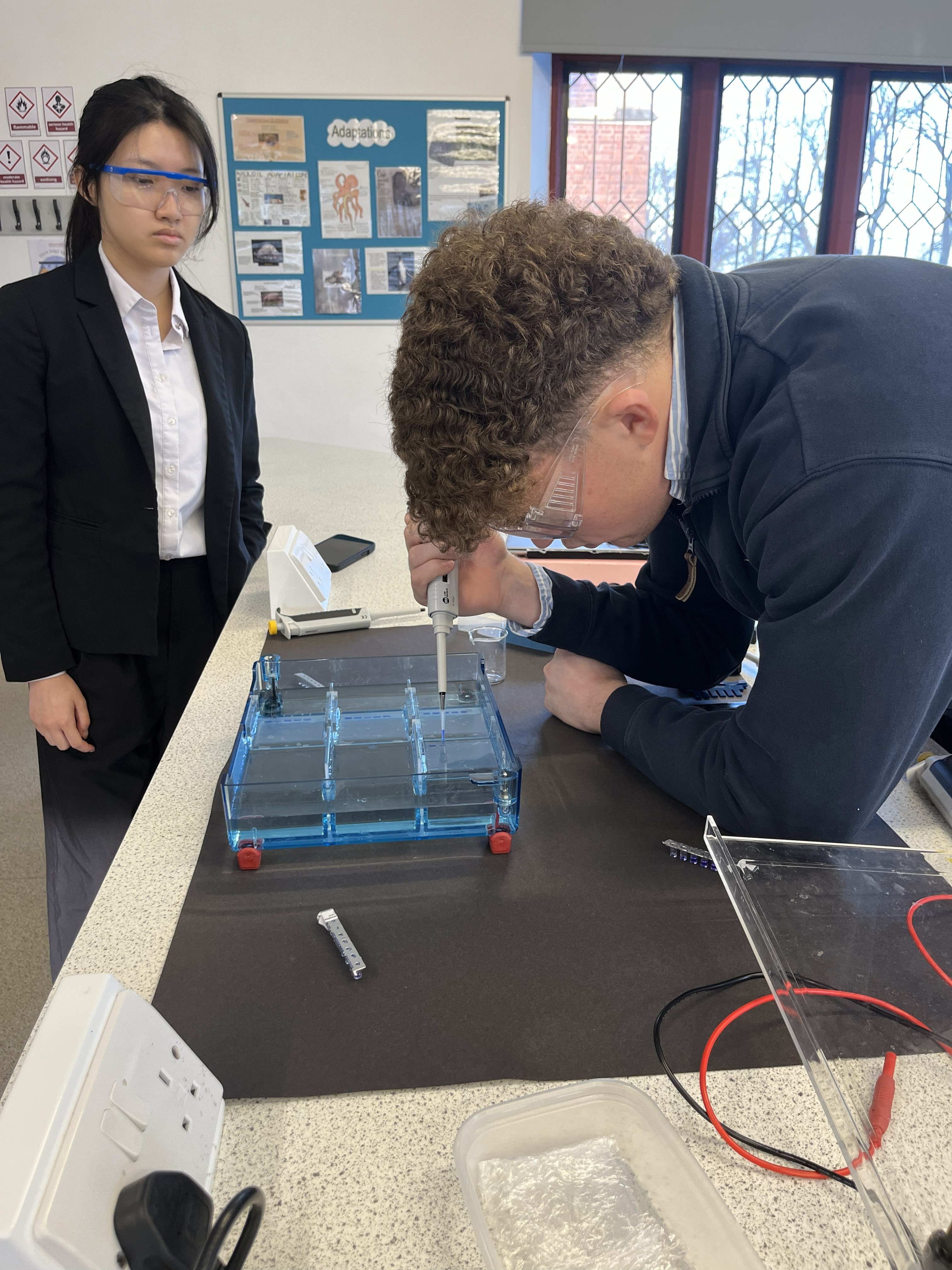 - Loading the gels – The DNA samples were precisely pipetted into the wells of the submerged gels, requiring steady hands and good technique. All pupils completed this step successfully.