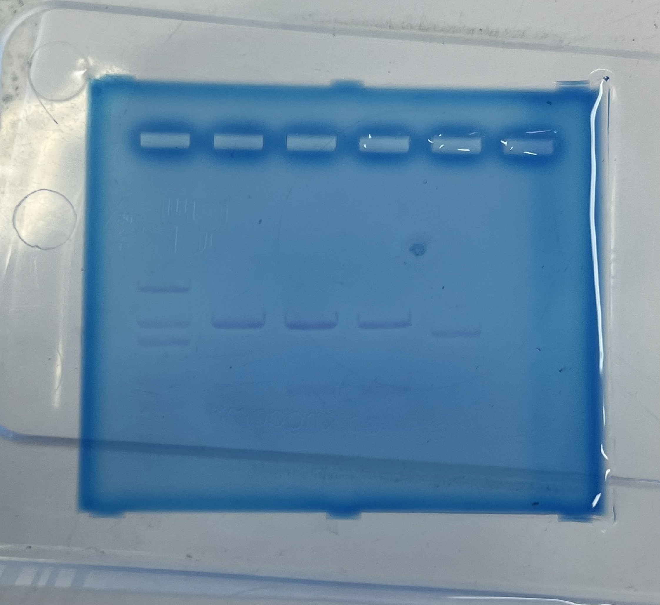 - Running the electrophoresis – An electric current was applied, causing the negatively charged DNA fragments to migrate toward the positive electrode. The DNA fragments were visible as blue-stained bands in the gels.